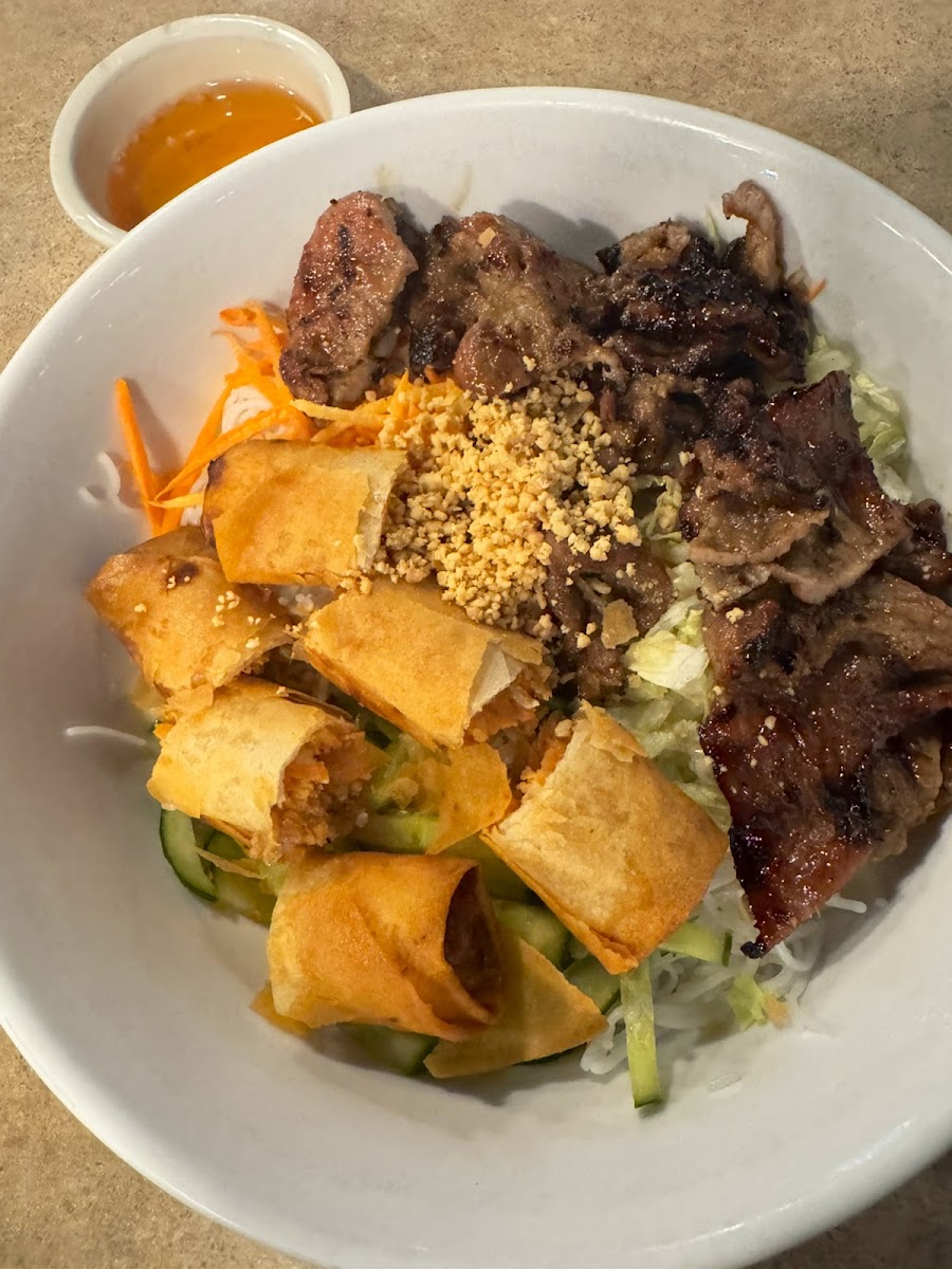 Beyond pho, the menu offers familiar favorites like banh mi sandwiches, vermicelli noodle bowls, and spring rolls. I’ve personally watched first-time diners struggle to choose, then end up sharing plates just to try more. The grilled pork vermicelli bowl stands out for its texture contrast: smoky meat, crisp pickled vegetables, and soft noodles working together in every bite. The kitchen follows traditional prep methods, grilling meats fresh to order and assembling dishes quickly to preserve temperature and flavor. That attention to process shows up on the plate.